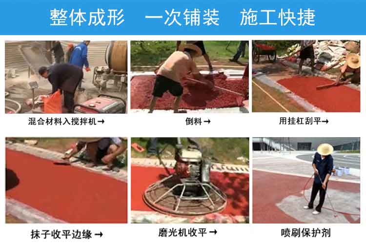 透水混凝土是由骨料、高標號水泥、摻合料,水性樹脂、彩色強化劑、穩(wěn)定劑及水等拌制而成的一種多孔輕質(zhì)混凝土,由粗骨料表面包覆一薄層漿料相互粘結(jié)而成孔穴均勻分部的蜂窩狀結(jié)構(gòu),故具有透氣、透水和重量輕的特點。